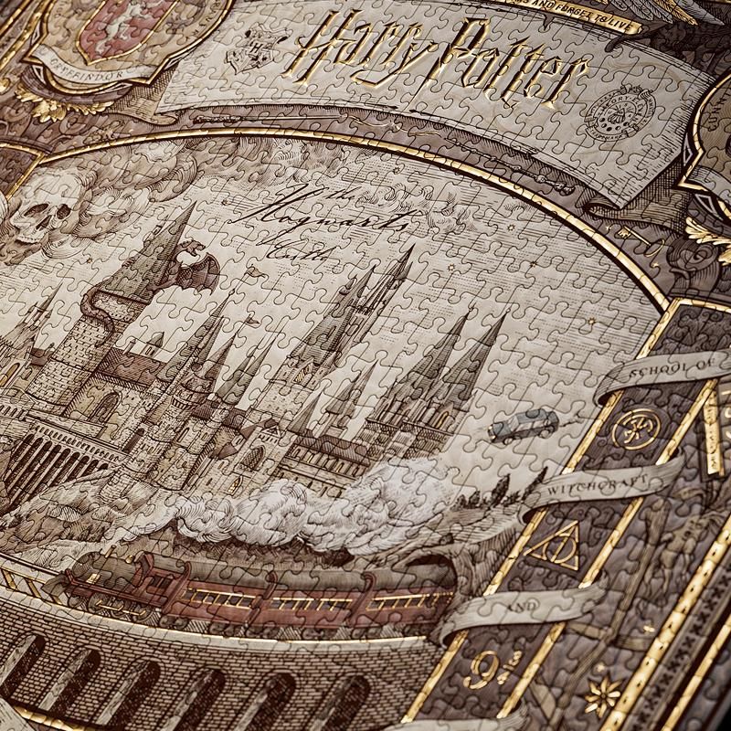 Erlebe das Wunder der Zaubererwelt wie nie zuvor mit einem bezaubernden 1.000-Teile-Puzzle, das das Schloss Hogwarts zum Leben erweckt. Die Puzzleteile selbst sind mit eleganter Goldfolie verziert und werden in einer hochwertigen Tragetasche geliefert.